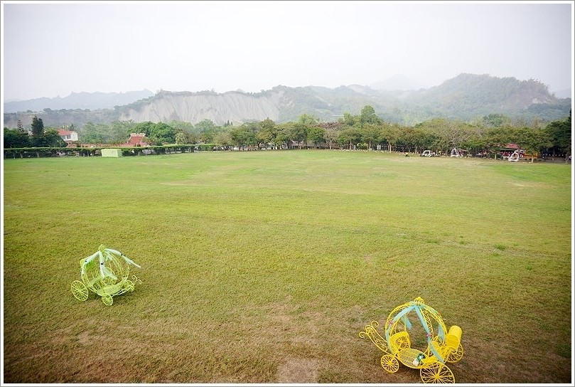 ▼往外頭俯瞰視野超級好,不僅可以看見一大片綠油油的草地與彩色馬車,還能看到月世界呢!