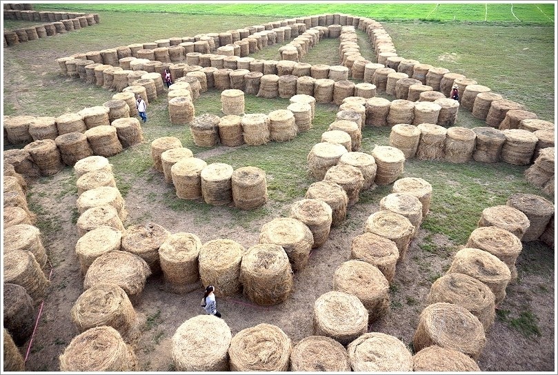 ▼另外一側則是用500顆牧草球打造而成的「牧草迷宮」,看起來很像是一個稻草人的造型,真是太厲害啦!