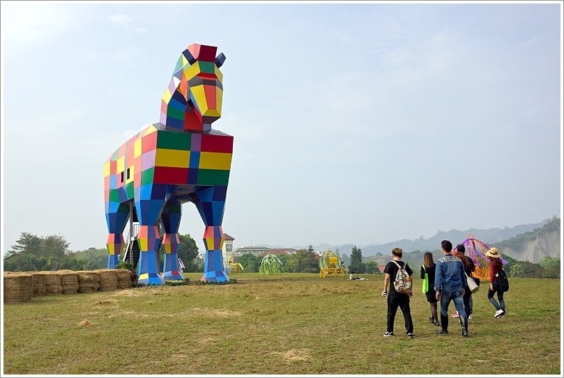 ▼首先先來看這座超高大的「彩虹戰馬」,這隻彩虹戰馬原本是前年所打造而成的巨型牧馬,這次特別改造成彩虹模樣,站在草地上看起來超吸睛的啦!