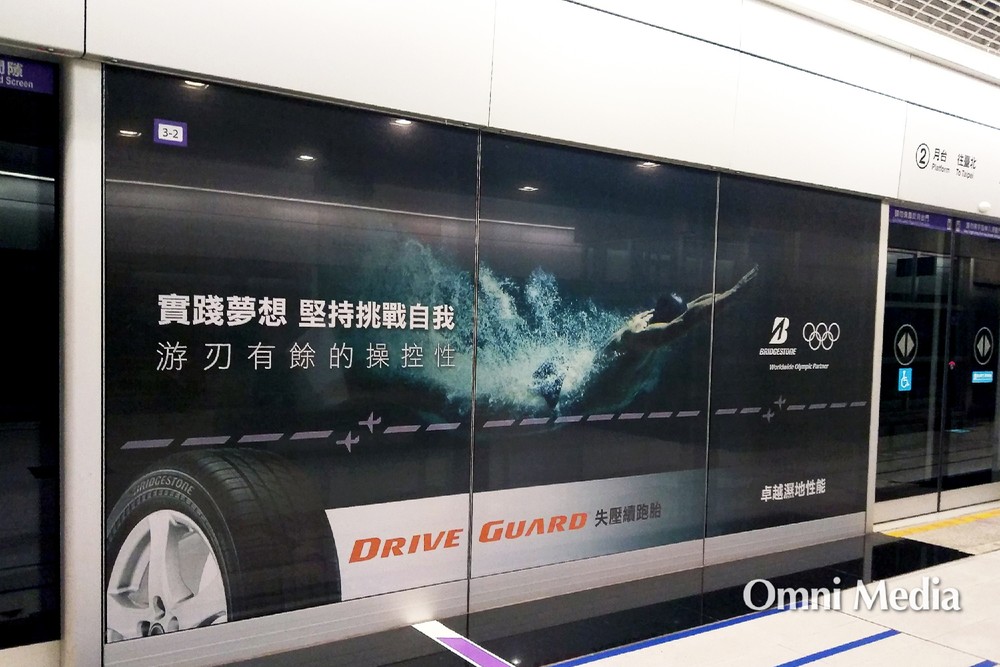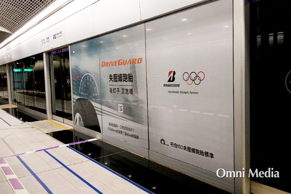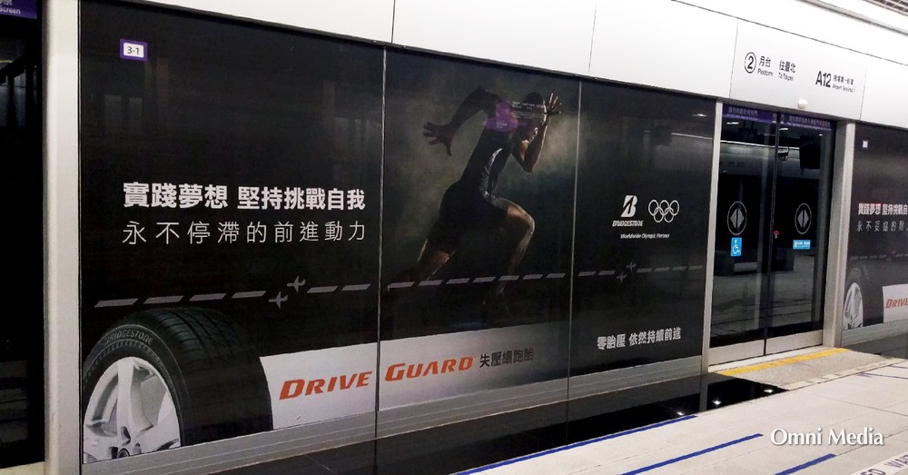 普利司通作為奧林匹克運動會的贊助商,看準桃園機場捷運平均班距7.5分鐘,旅客在月台層的停留時間長,深入閱讀廣告訊息的機會也大大提升,此次更透過與國際盛事合作的機會,在強調運動精神之餘,以「碰釘子,又怎樣」帶出自家Drive guard失壓續跑胎於0胎壓仍能持續行駛的特性,激勵更多人在實踐夢想、挑戰自我的途中,堅持「永不停滯的前進動力」,就算「碰釘子又怎樣」?遇到挫折也要勇往直前!普利司通的月台閘門貼廣告,不僅拚品牌好感度,更為穿梭於桃園機場捷運的旅客,注入滿滿正能量。