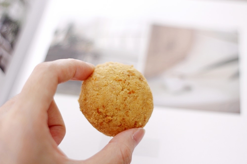 加入新鮮的柳橙皮,使得清脆的餅乾散發出自然迷人的果香,酸酸甜甜的柳橙,是我冬天最愛的水果,吃到這款餅乾讓我覺得好滿足呀!