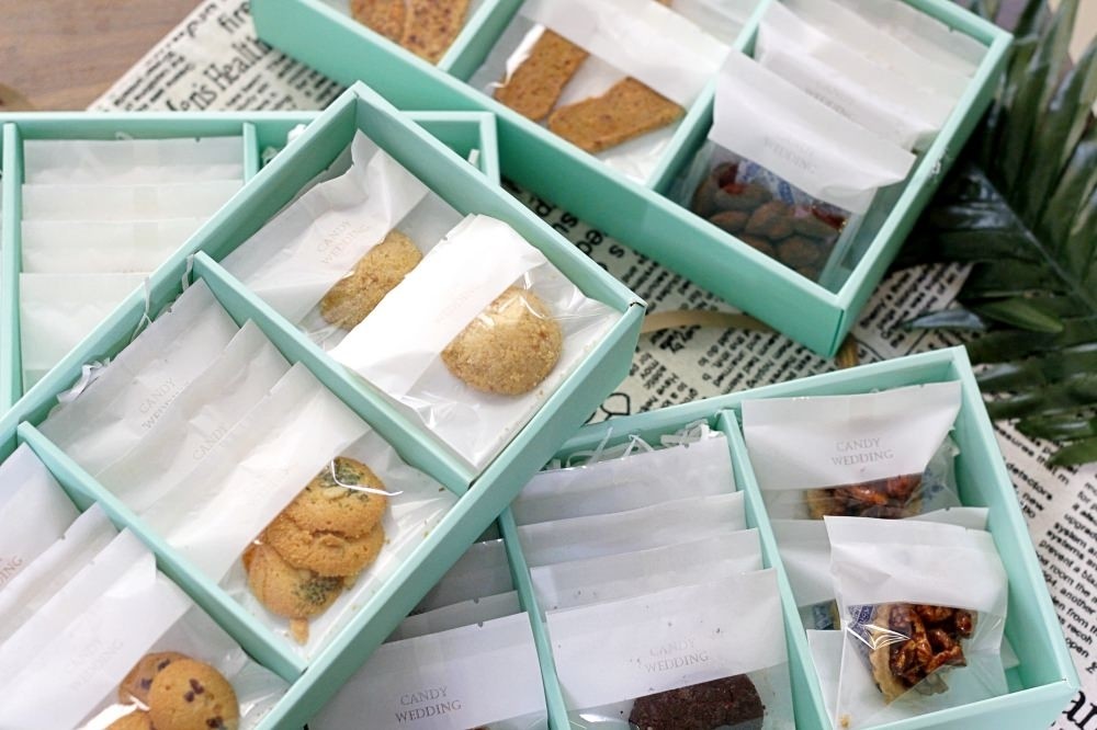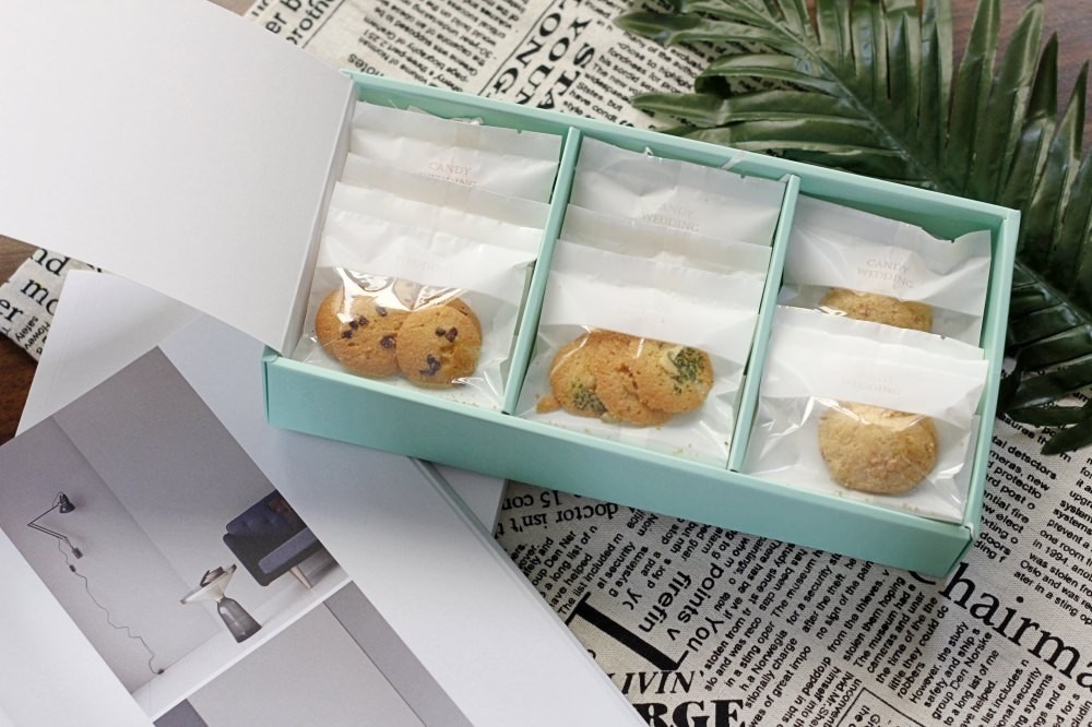 之前分享過 Candy wedding 家的戚風蛋糕,蓬鬆有彈性的口感,微甜風味不膩口,真的非常推薦給大家!這次又收到了 Candy Wedding 的邀請來分享他們家的手工餅乾,口味多達 20 種,選擇多樣又好吃,而且常溫下保存時間比蛋糕久,若是擔心分送時間的問題,選擇「手工餅乾」作為喜餅或是彌月禮會更為方便。有興趣的人就接下去讓我一一為大家介紹吧!