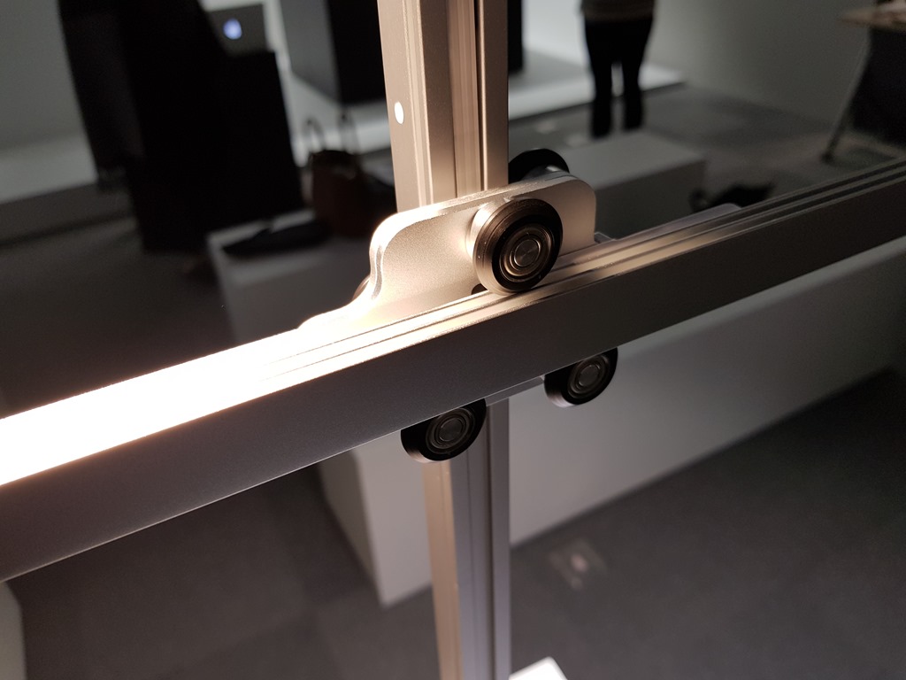 燈具設計上以起重機為發想,採用三軸定位設計,採用重力而非拉力來平衡燈具,燈管可水平與垂直位置可輕鬆移動,調整到最合適的位置。光線調控部分,具有自動亮度記憶設置,可快速調整到你需要的亮度。