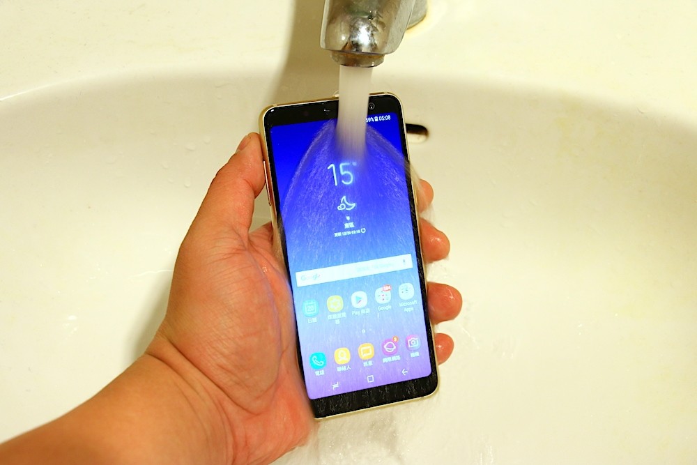繼 Galaxy A7/A5 2017 加入 IP68 防塵防水功能之後,Samsung 也在 Galaxy A8 (2018) 加入了 IP68 防塵防水功能,即使是被不小心翻倒的水、咖啡潑到,又或是被突如其來的大雨淋濕,也能在擦拭乾淨之後安心的繼續使用。不過,還是要特別提醒大家,由於 A8 (2018) 具備 “兩個” 獨立的卡槽,每次安裝 SIM 卡時請務必檢查這兩個卡槽是否有密合,確保完全不會進水。此外,熱水、溫泉水、肥皂水、海水會造成防水膠條損壞,建議大家千萬不要讓手機接觸到這些液體,若不慎接觸請盡快擦拭乾淨。
