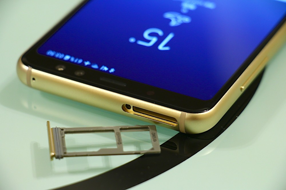 值得一提的是,為了讓有雙卡雙待且又有擴充儲存空間需求的用戶使用得更方便,A8 (2018) 特別採用兩個獨立卡槽設計,機身左側是 SIM 卡 1 單卡槽,而機身頂部則是 SIM 卡 2 與 microSD 記憶卡二合一卡槽,最高支援 256GB 擴充,用戶可以依照自己的需求選擇使用。