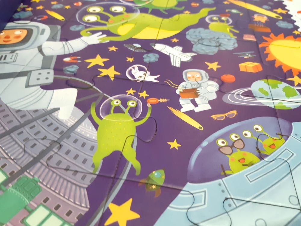這款太空探索拼圖共有 42 片,拼圖本身都是使用再生紙質以及環保彩色印刷來保障小朋友的安全。