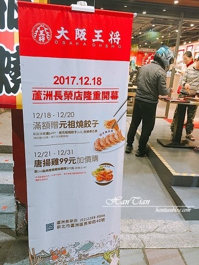 哇哇哇~~~從蘆洲長榮路出現這家大阪王將, 我就密切的關注它!因為就在我們家附近,讓我超期待的呀~這間大阪王將就位在蘆洲佳瑪生活百貨附近,而且最近附近也新開了一間獨棟三層樓高的NET,還有24小時的家樂福便利購,蘆洲真的是越來越便利了呀~~~