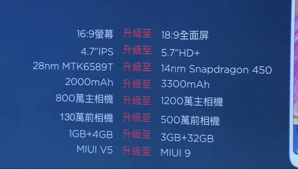 紅米 5 Plus 則是 5.99 吋 18:9 螢幕比例、2160 × 1080 FHD+ 解析度、Qualcomm Snapdragon 625 處理器、4GB RAM / 64GB ROM 容量配置、4000mAh 電池容量。