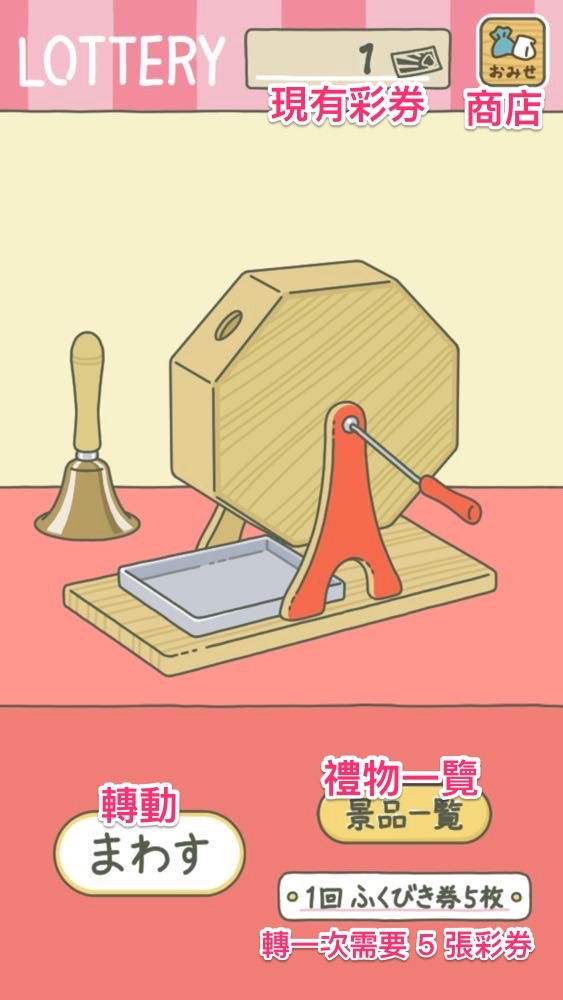 商店中還有右上方有著樂透的選項。需要五張抽獎券才能轉一次樂透。