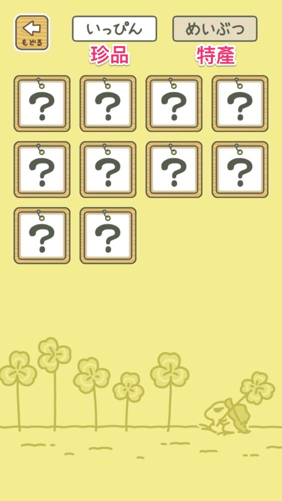 畫面中的幸運草田(其實應該是要說三葉草田)就是讓我們收集三葉草和幸運草的地方,而三葉草也是這遊戲中用來去商店購買物品所支付的貨幣單位。三葉草田大概 3 小時就可以去收集一次,不用買種子、澆水,他會自己再長出來。如果運氣好的話還會種出四葉草,就是幸運草,能夠讓小青蛙放在身上當作幸運物的品項之一,不過一朵只能用一次。