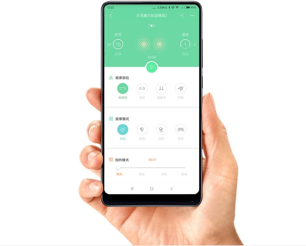 根據魔力貼溫情版的眾籌網頁上說明這次加入加熱功能的溫情版,在外型上較上一代大一點,操作版也分為上方電源鍵、下方加熱按鍵、左右兩側力道增減鍵,更多了能與米家 app 結合的智慧功能,讓用戶可以直接透過手機介面來操作按摩的部位、想要的力道、模式。