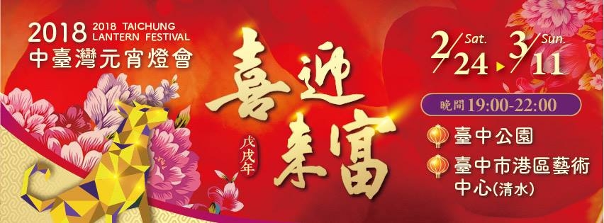 2018中臺灣元宵燈會從2月24日至3月11日於臺中公園及港區藝術中心盛大登場囉!戊戌狗年富貴年,主燈則以「公犬遠瞻-福旺中臺」與「母犬守護-祥旺花都」為主題,打造雙主燈相互呼應,雙主燈並使用「臺灣犬」的形象及性格作為設計發想,祈願臺中能守護固本、打造宜居心城市的同時,也能前瞻遠眺、勇敢前行共創未來。雙燈區每晚於18:00-22:00點燈,誠致敬邀全臺各地的朋友與國外旅客一同共襄盛舉。