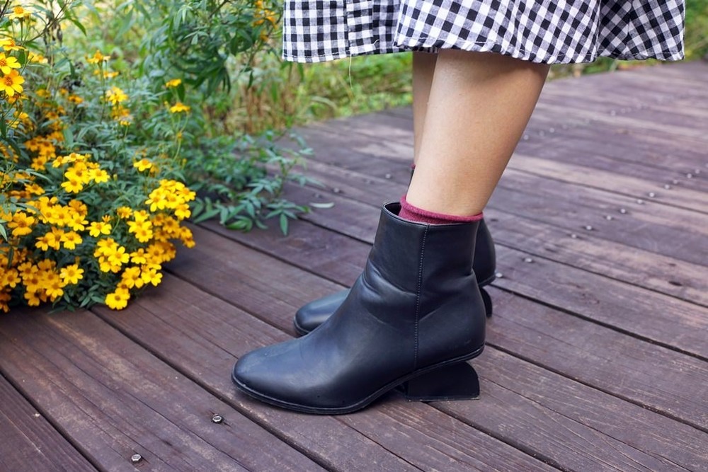 特別提一下上個月在QUEENSHOP新買的短靴,長得太有趣而吸引我的注意,一直想找一雙有跟的短靴,穿搭比例會比較好,可是太高我就不會走路了XD,這雙的腳後跟有特殊設計,跟高不會太高,重點是穿起來很好走!
