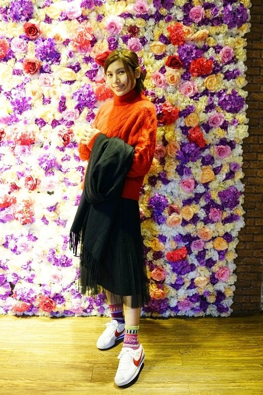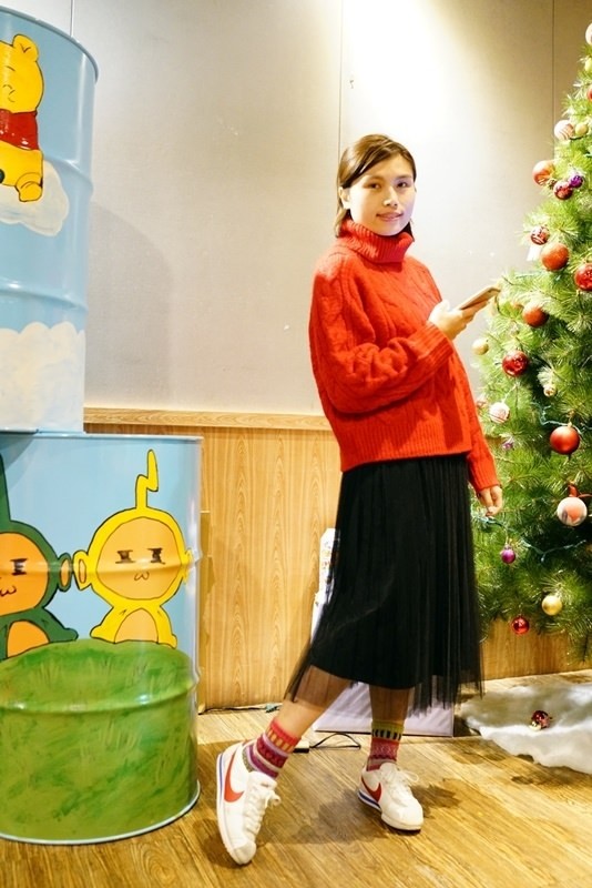 買一件新衣可以穿兩天,改變下半身就可呈現不同的穿搭風格,上一套的紅色翻領毛衣,下面搭配紗裙+球鞋,立刻變身甜美休閒風。