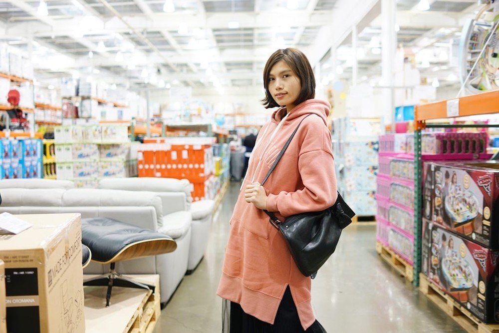 因為衣服顏色已經有亮點,在其他配件的部分我會選擇黑色,看起來比較一致。