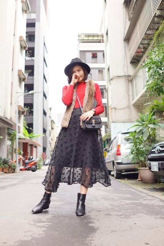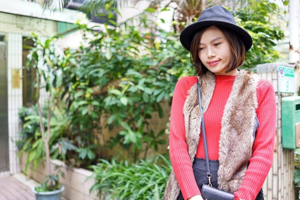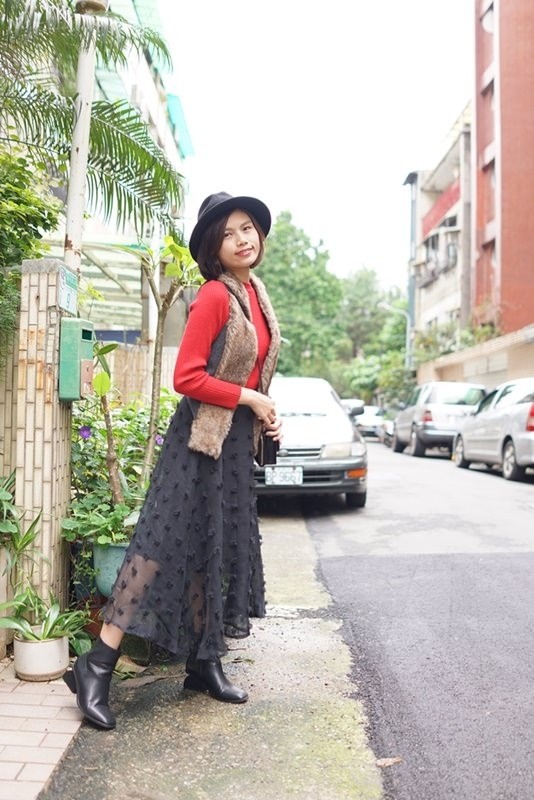 毛茸茸的背心也是每年必備的單品之一,這件是我N年前買的,覺得現在出的毛背心都好澎,雖然很有氣勢又保暖,很好看沒錯,但因為我肩膀較寬,穿起來會顯壯,不太適合我,就沒入手了。