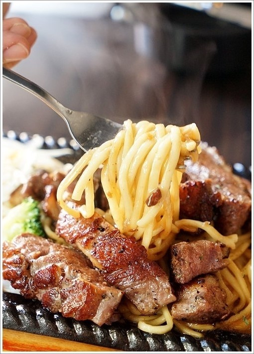 ▼鐵板麵搭配的是洋蔥蘑菇醬,不僅採用雞骨高湯為基底,搭配16種辛香料下去熬煮而成,吃起來微甜不膩,搭配鐵板麵更為香Q滑順,入味又好吃!他們的鐵板麵不像一般是直接將醬料淋上麵體,而是有稍微拌炒過, 所以醬料更能緊緊巴附著麵條,吃起來也更有味道!