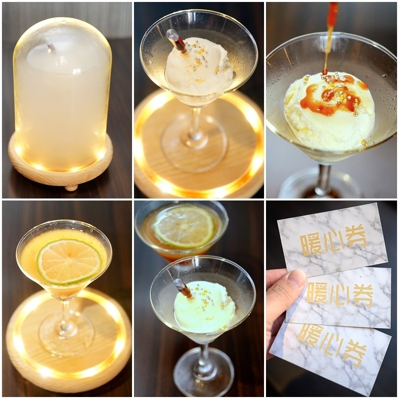 ▼為了回饋顧客,店家特別推出壽星專屬飲品與暖心券,凡是壽星來店消費或持有暖心券的朋友就能免費獲得店家招待的國王之耀(特調雞尾酒),不能喝酒的朋友則會改為招待皇后聖盃(特選冰淇淋),一上桌就有滿滿驚喜,不僅採用煙燻蘋果木製造出裊裊白煙的效果,搭配燈光、擺盤更是讓人感受到店家獨特的用心!暖心券則是為了鼓勵顧客可以發自內心的稱讚服務人員用心的服務,只要口頭鼓勵或是或是寫張小紙條感謝服務人員,就有機會獲得暖心券,而一句小小的讚美也能讓服務人員開心一整天,進而提升服務品質唷!