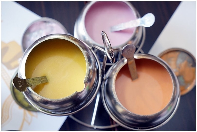 ▼沙拉醬,一共有藍莓醬、蜂蜜芥末醬、千島醬等三種選擇,都可以視個人喜愛自行搭配享用!