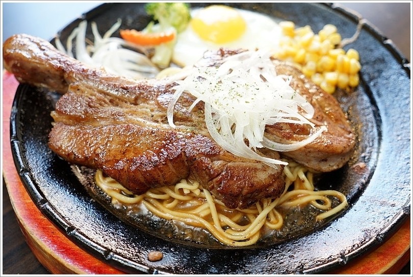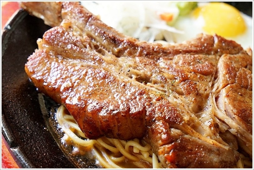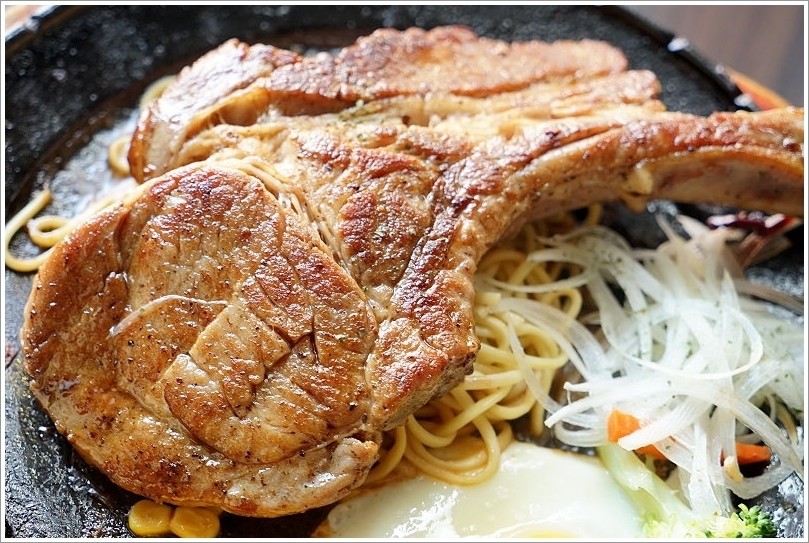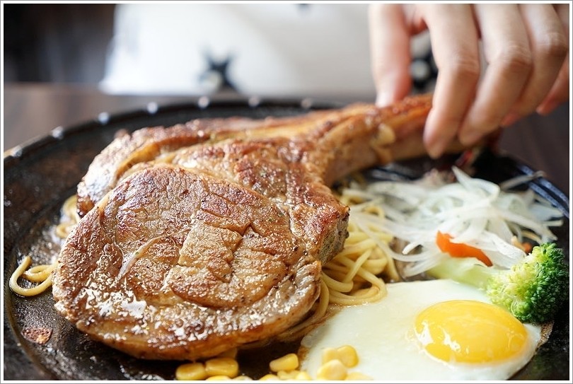 ▼戰斧豬排一整個份量十足,拿起來就跟斧頭差不多的感覺XD喜愛吃肉的朋友享用起來一定超過癮!