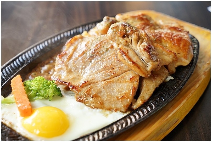▼沒多久主餐就上桌啦!松阪豬+雞腿排(280元),上頭兩大塊肉排將底層的主食完全被覆蓋住,一旁還附有蛋、蔬菜,一整個份量十足啊!