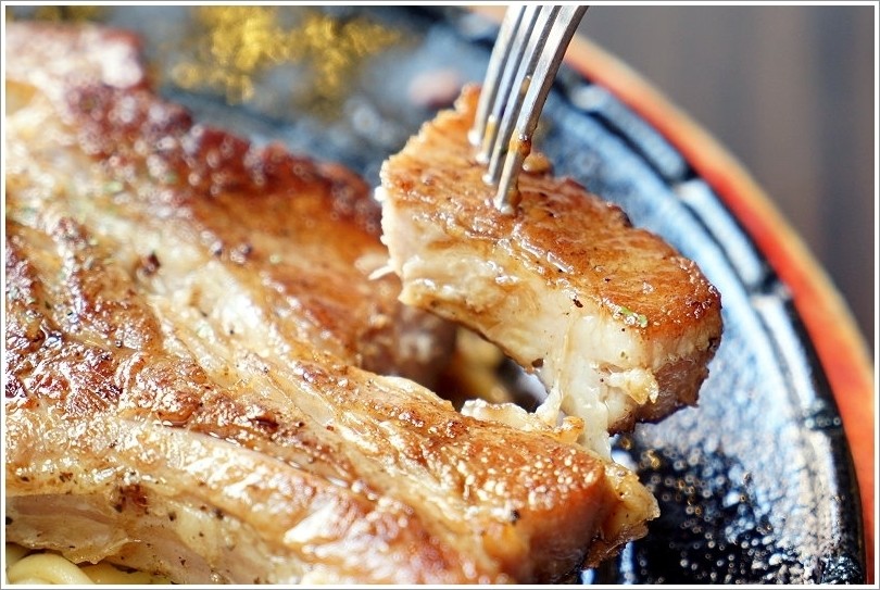 ▼戰斧豬排不僅能享用到香Q肥嫩的肉質,還有軟嫩肥美的油花,一次能盡享兩個不同部位的口感;一整個香氣四溢,讓人口水直流啊!