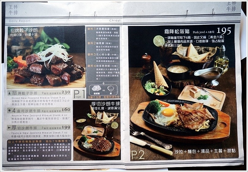2018台灣燈會在嘉義! 來到嘉義玩耍可別忘了附近的美食喔! 說到雲嘉地區第一首選的平價牛排,那就非得提到「王牪(讀音”宴”)牛排」不可!「王牪牛排」(嘉義中山店)就位於嘉義市東區中山路上,前身為雲嘉夜市經營30年之久的「南瀛牛排」,不僅主打原肉美學,不使用重組肉,希望能用簡單的調味讓客人吃到最鮮美的肉品原味;此外還堅持現點現做,不預煎排餐,並使用IPad點餐,搭配19種香料所熬煮而成的醬料,讓在地客人一吃就愛上!除了大份量、口味好之外,價格也相當平實;重點是每個餐點都是套餐價,副餐也不馬虎,不僅創新又極具巧思,讓人吃得既飽足又滿足!此外像是是飲品、湯品等都是自取式吃到飽,真是非常佛心來的啊!