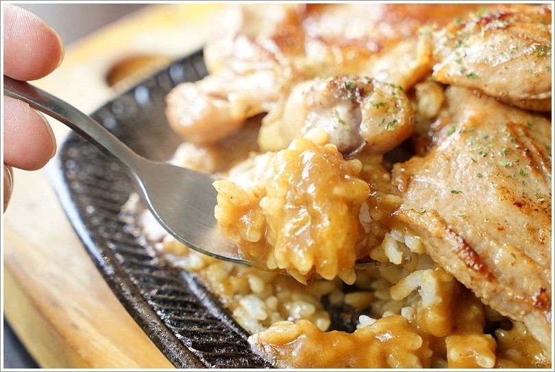 ▼白飯接近鐵板的部份還帶有鍋巴口感,讓人一次就能品嚐到香Q微黏與酥香微脆的雙重口感,真是太棒啦!