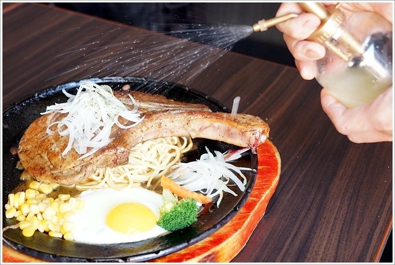 ▼上桌的同時也採用香水瓶搭配檸檬汁噴灑在戰斧豬排上提味,一整個充滿創意與驚喜!