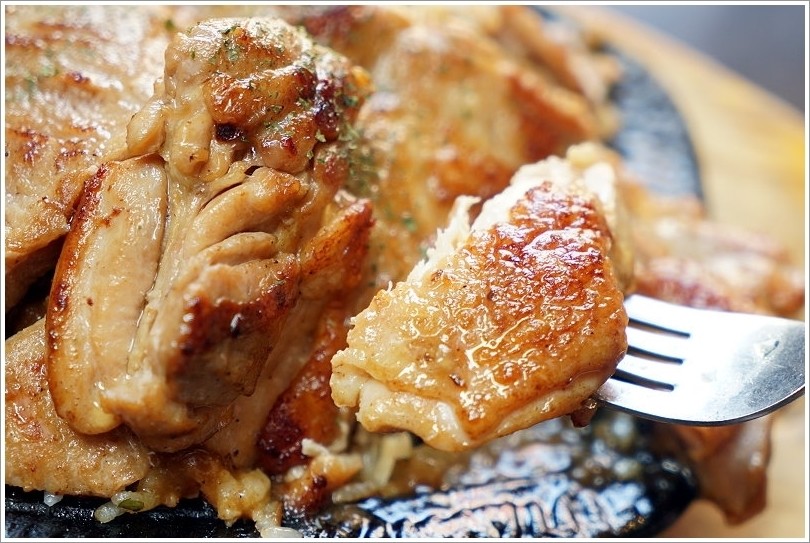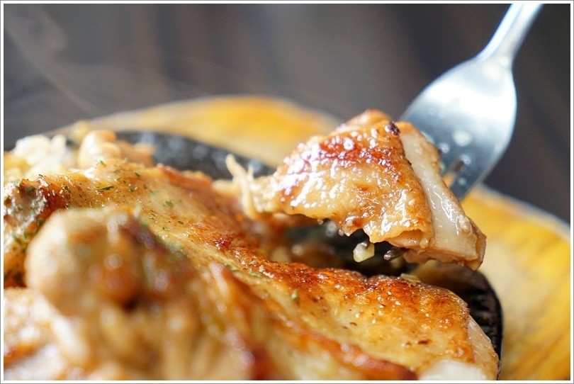 ▼接下來就要來品嚐美味的雞腿排啦!用刀輕輕一切就能輕鬆劃開,感受的到軟嫩的肉質與噴發的香氣!