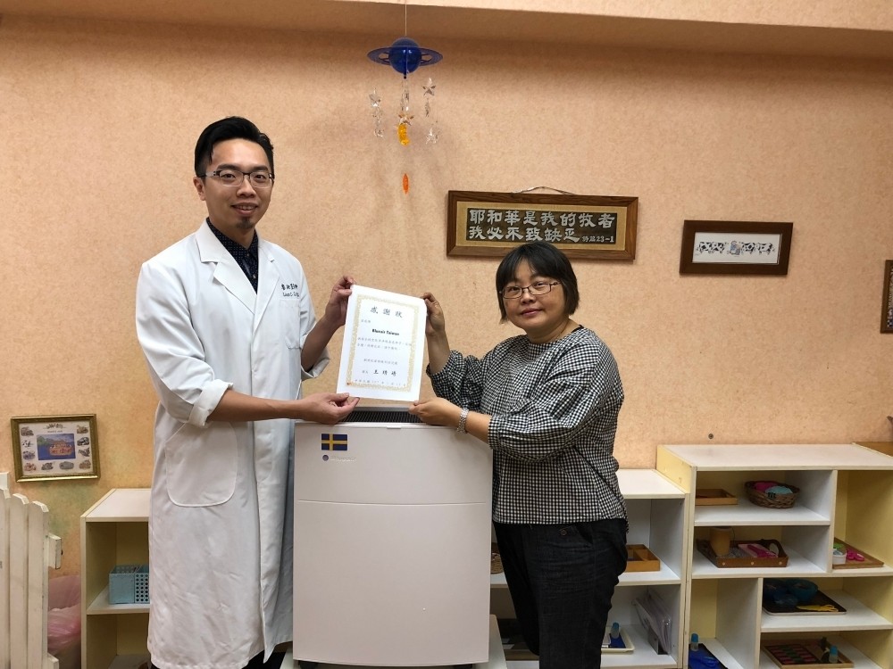本次的捐贈是由前高雄長庚醫院耳鼻喉科醫師廖昶筌所促成,廖醫師表示: 「因為高雄空氣真的很差,大部份小朋友每天都要戴著口罩去上學,年紀愈小的兒童呼吸道愈脆弱,假如幼兒長期在空氣品質差的環境,會增加鼻子過敏、氣喘等呼吸道疾病。在南部,大部分家庭裡都有空氣清淨機,然而在學校卻很少有這樣的設備,於是促成了今次的捐贈。