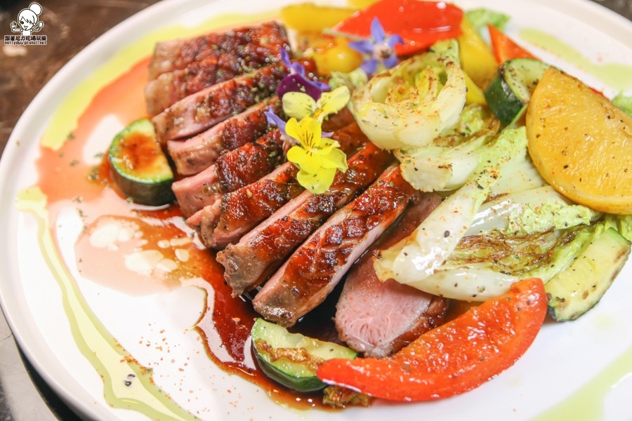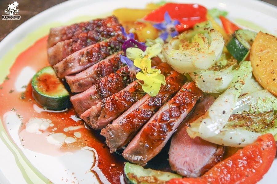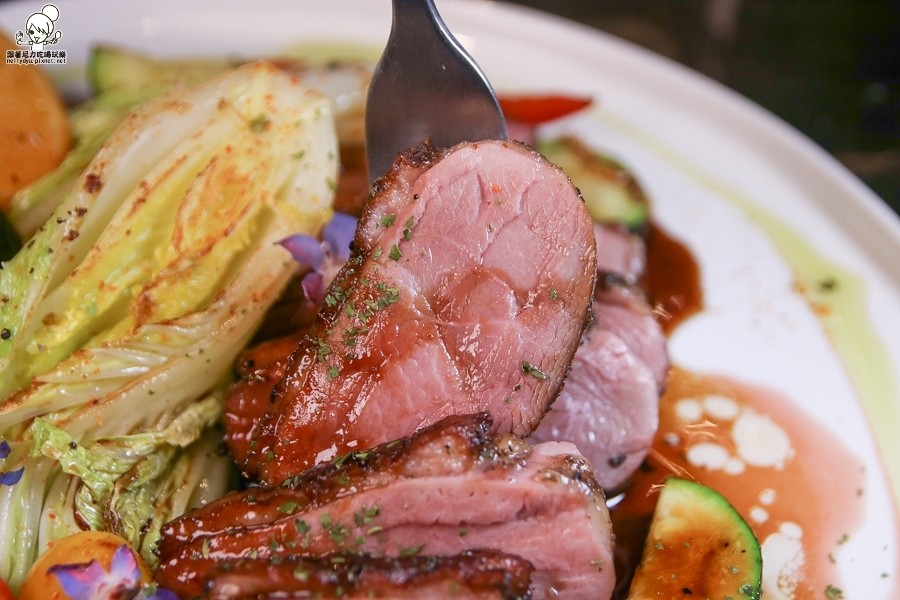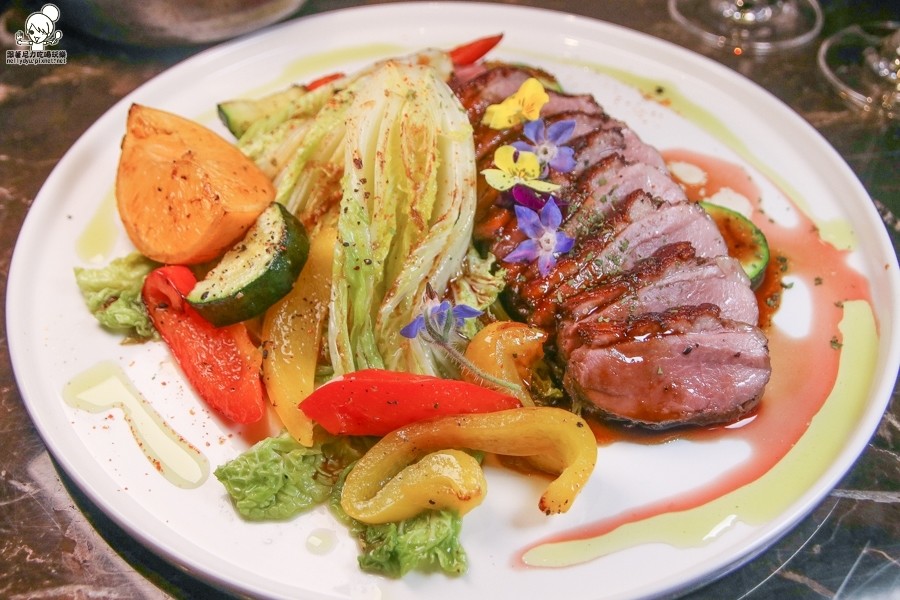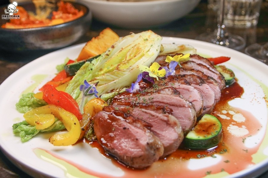使用低溫烹飪的帶骨小牛肋排、低溫烹調櫻桃鴨胸,記得先預約才能品味到,限量販售