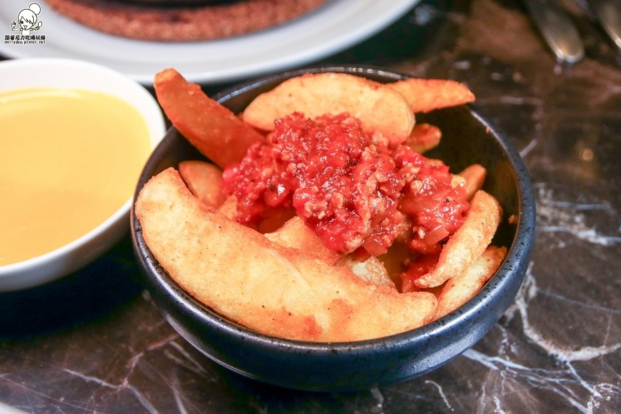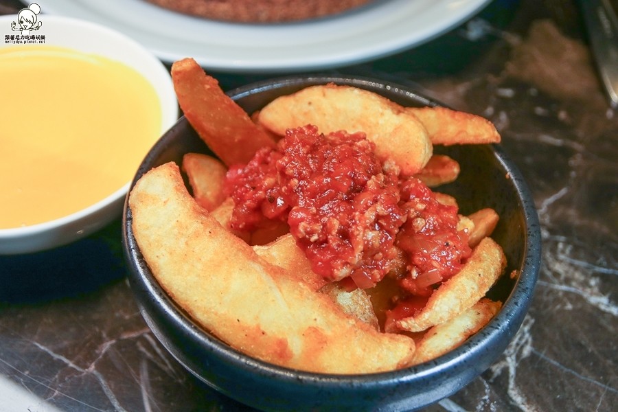 帶有稠度的起士醬,就這樣的與薯條結合,還有肉醬的香氣