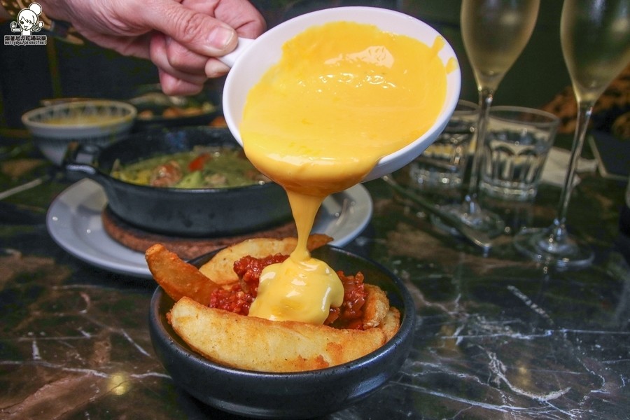 再自己淋上邪惡濃稠的起司醬,一層一層堆疊邪惡美食