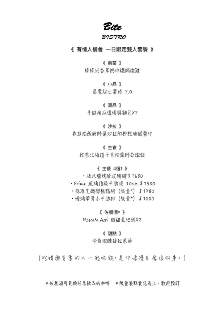 最後一口餐酒館這次超有誠意的,推出超值情人節套餐