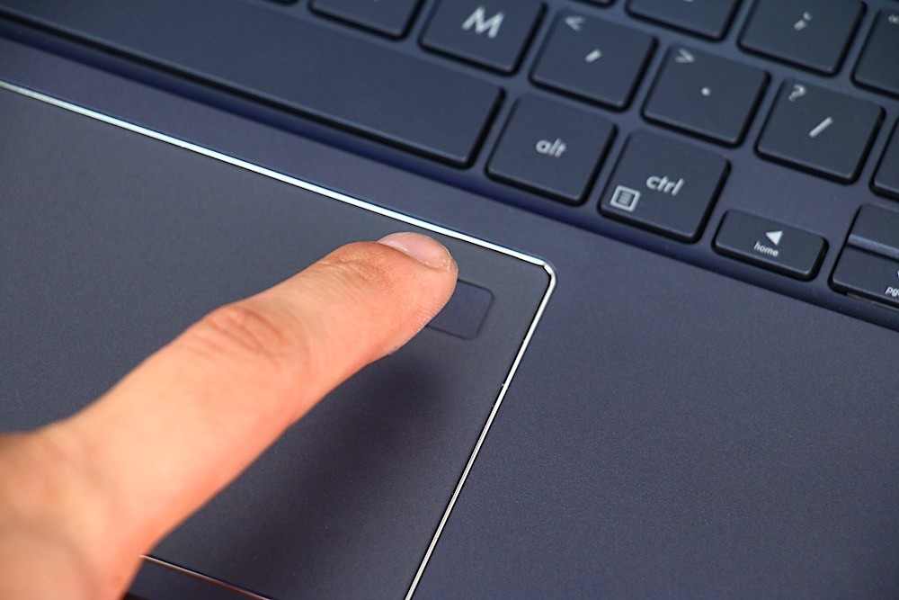 而在觸控板的右上角,配置了一個支援 Windows Hello 的指紋辨識器,當指紋檔案已成功建檔後,就能有效降低電腦被有心人竊取盜用的機率,保障存放在電腦中的重要檔案、個人資料不會被輕易外洩。