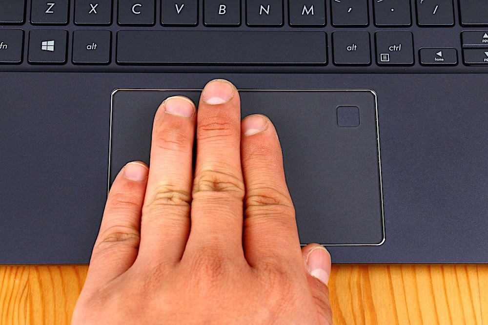 鍵盤下方則是配備面積相當大的多功能觸控板,除了內建可有效防止使用者誤觸的智慧防掌技術,以及一般常用的鼠標滑動、選擇功能之外,還另外支援最多四指的智慧手勢功能,無論是要切換工作桌面、切換正在使用的軟體…等,都可以更加輕鬆。