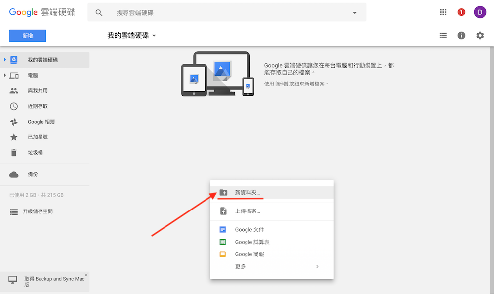 第一步 – 開啟 Google Drive,並直接點選滑鼠右鍵