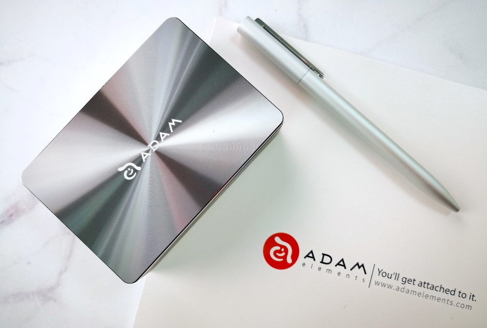 開箱的產品是灰色,在光線照射下,反射出不同顏色,向四周擴展,增進視覺張力,同心圓紋路加深精緻細節。亞果元素產品從蘋果多用途傳輸線到多媒體行動碟 iKlips 均走時尚又多功能路線,並曾獲德國紅點設計大獎肯定,出色的產品設計能力顯然反映在自家產品上。