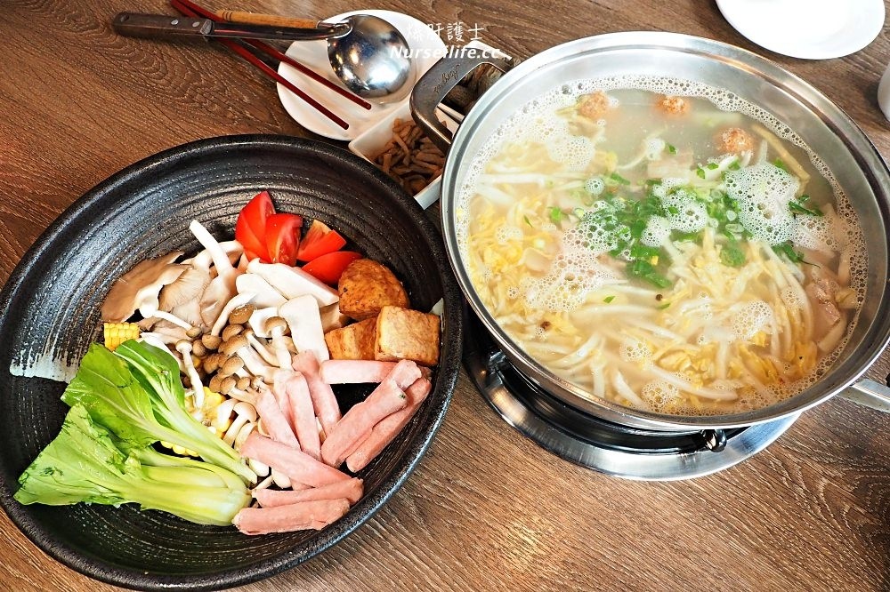 酸白肉鍋|以自家使用大吟釀酒粕發酵的白菜,湯頭喝起來清甜自然帶著淡淡溫和的酸味,會讓人一直舀湯來喝,而這天因為店家line的活動,這一大鍋含菜盤是免費的。