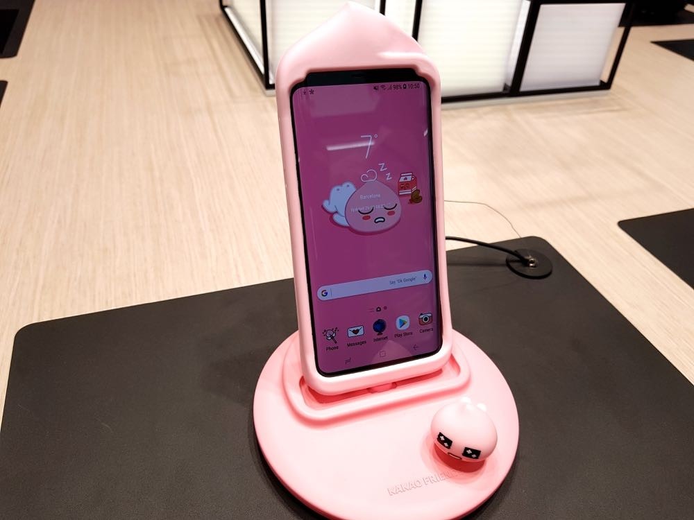 稍早跟大家介紹過許多 Samsung Galaxy S9 / S9+ 的週邊配件,沒想到今天在 MWC 會場中竟然驚見這在韓國根本有著如熊大、兔兔在台灣高人氣的社群軟體 KAKAO 裡的人氣王 – Ryan 和 Apeach ,這兩款可愛爆表的 Ryan 和 Apeach 造型的配件竟然是 S9 的保護殼與座充組合!