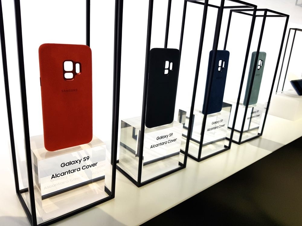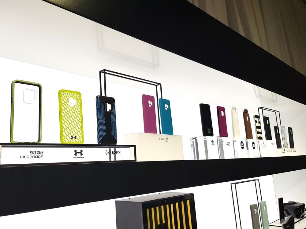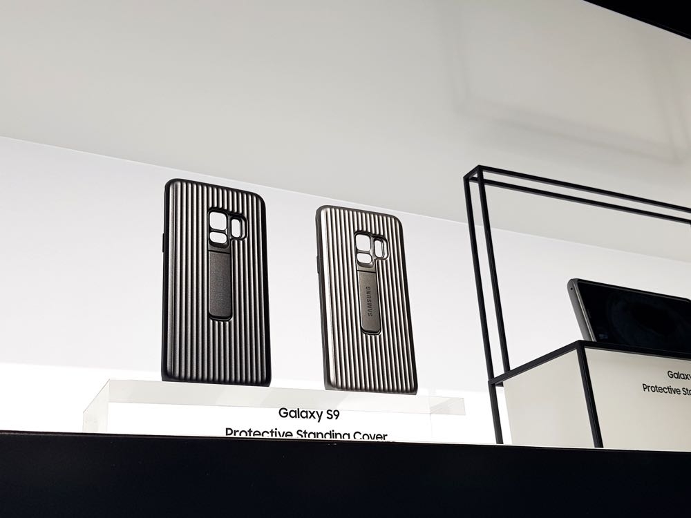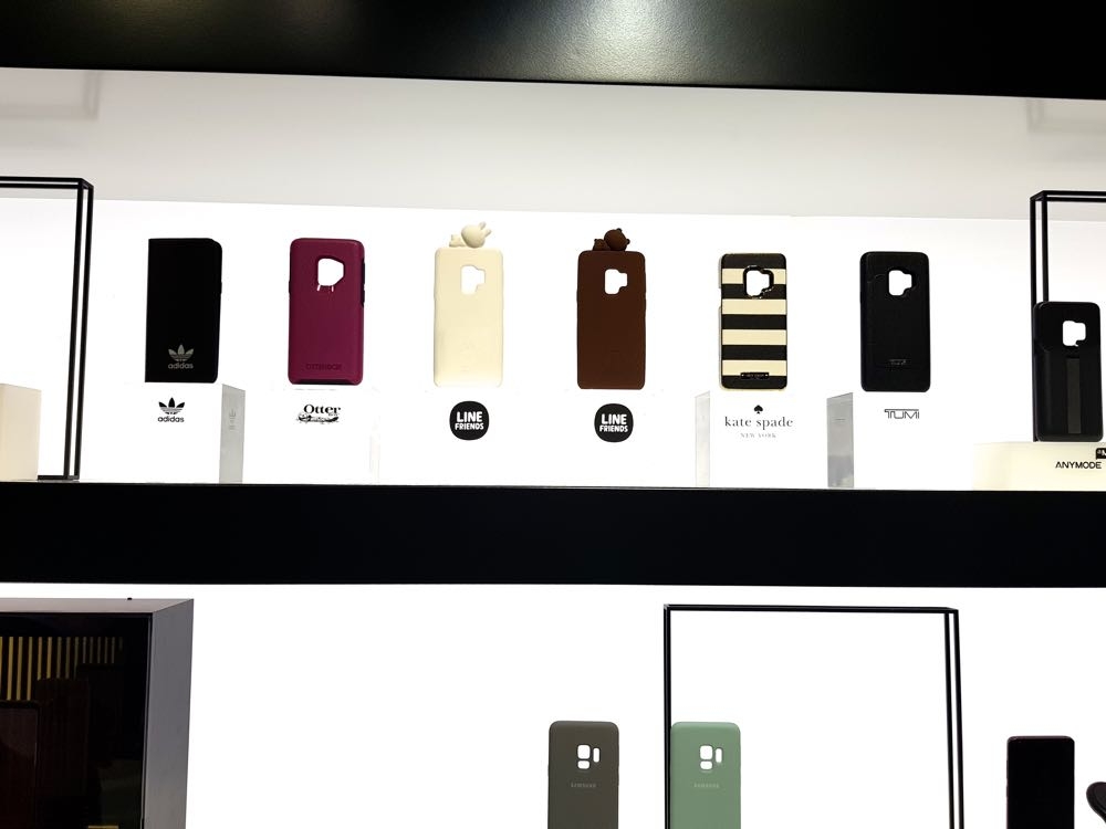 除了 DeX Pad 以外,現場也有展出多種 Samsung Galaxy S9 / S9+ 的保護殼,有與愛迪達、OtterBox、LINE、Kate spade、TUMI 等品牌聯名款,也有 Alcantara 柔軟材質、金屬造型保護功用、LED 提示閃爍等多種材質與功能保護殼選擇。