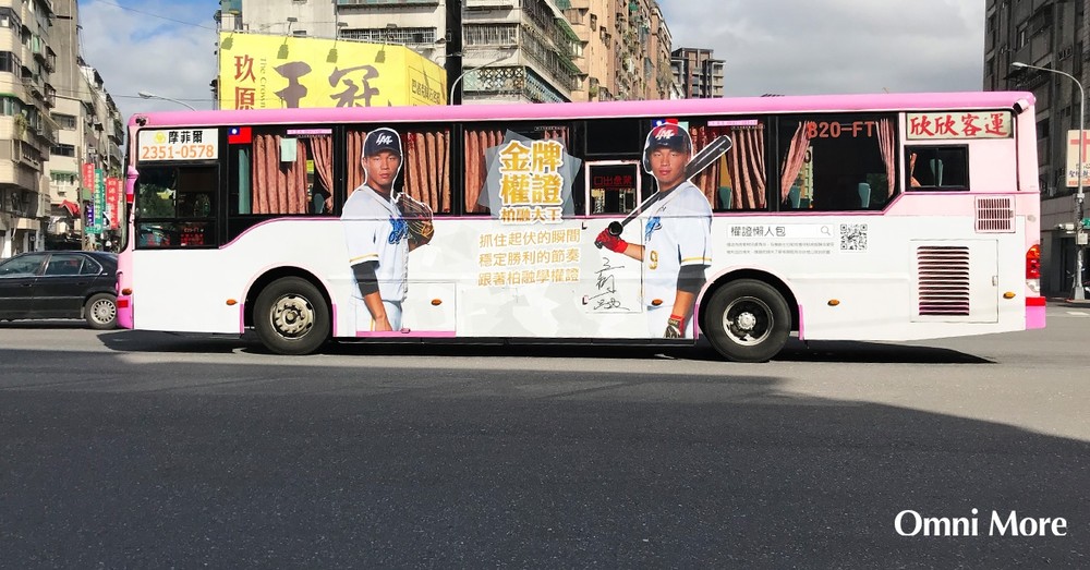 金牌權證「柏融大王」霸氣現身於公車車體廣告!中華民國證券商業同業公會為推廣權證,邀請人氣超夯的中華職棒打擊四冠王-王柏融當權證代言人,廣受大眾歡迎的親民好形象,行經街道、商圈引眾人目光,提升廣告矚目度,順勢將品牌訊息傳達給潛在消費者,也為品牌提升正面形象。公車又被稱為「城市中的移動看板」,醒目效果100%超大版面,穿梭大街小巷、深入城鄉角落的特性,每月接觸近1000萬的人潮,及18小時不斷傳播訊息,重覆頻率刺激,更加深消費者對廣告深刻印象。