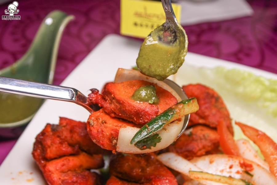 光是還沒沾醬的印度料理香氣就很足夠,讓雞肉好吃不柴