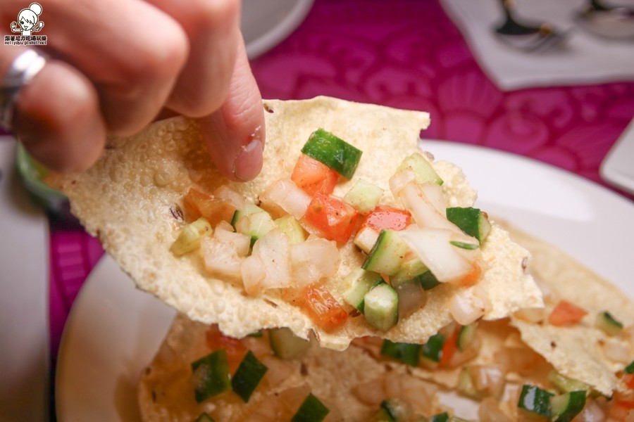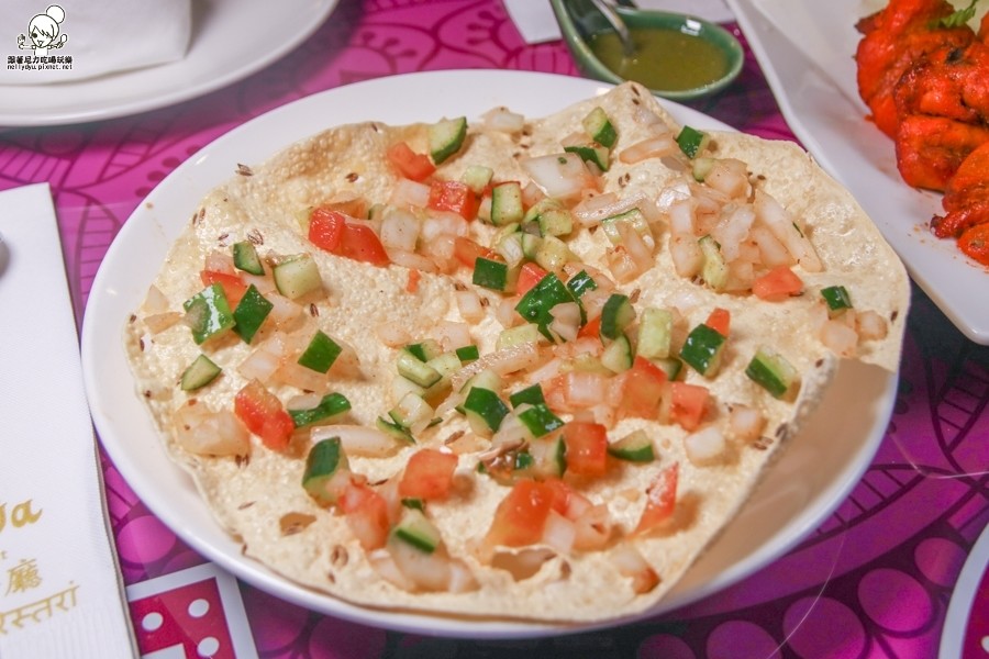 上面搭配調味過的蔬菜,清脆爽口還有卡滋卡滋的好吃印度餅皮