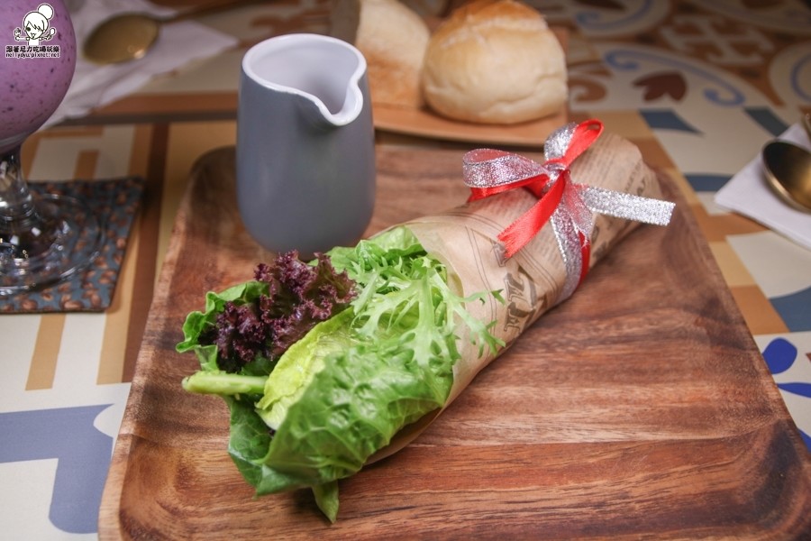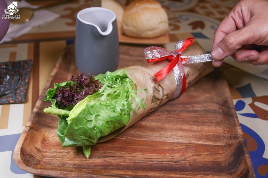 排餐內的生菜沙拉,帶有創意的擺盤方式