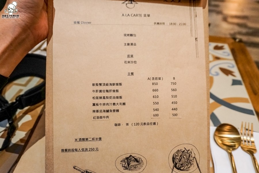 PS:午餐每人低消200元、晚餐時段每人低消250元、酌收清潔費5%