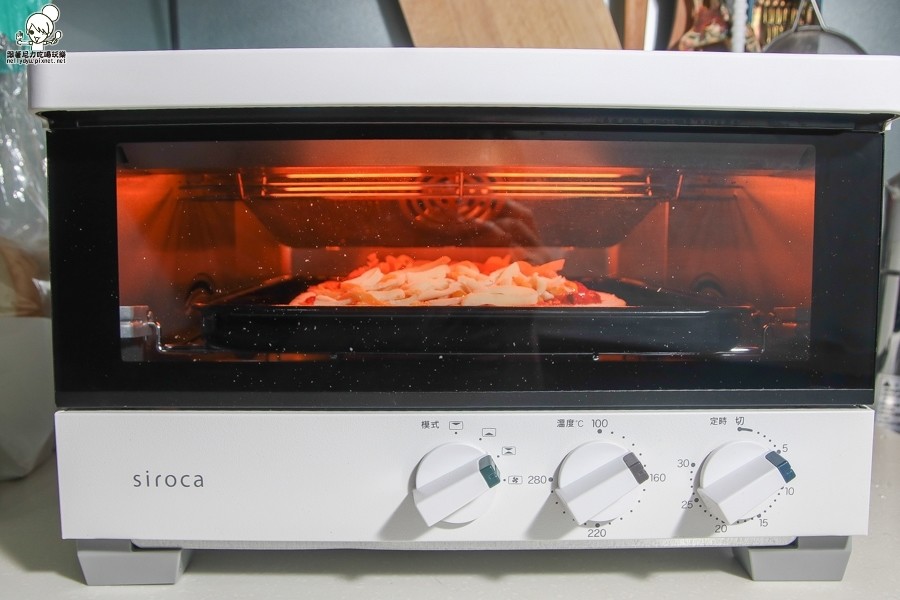 烤箱從100°C~280°C溫度可做調節,依照食物的熟程度來做加熱