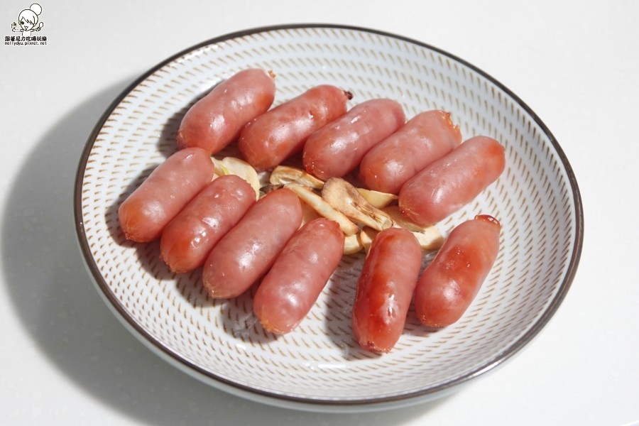 老爸最愛的烤香腸,我通常還會切一些蒜片一起加熱烤