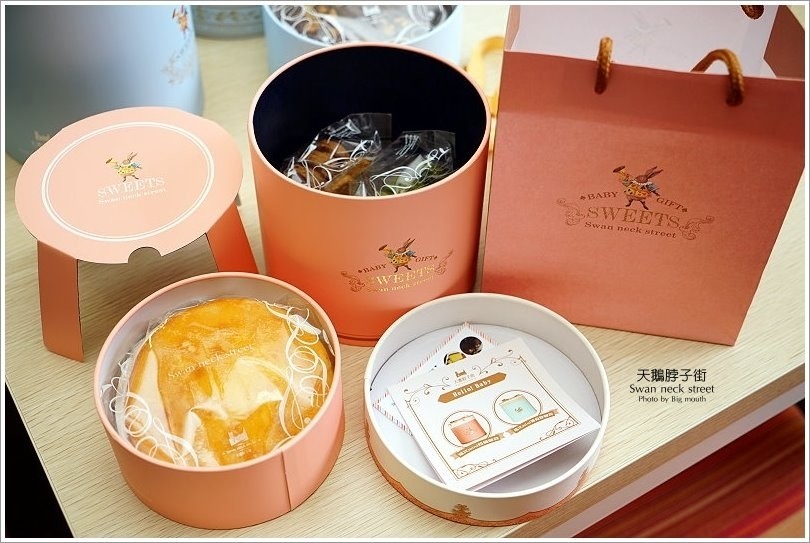 隨著大口家的小口弟出生(沒錯,正是三寶~),第一件事當然就是要來分享他的彌月蛋糕啦!「天鵝脖子街」不僅有各式各樣的手作餅乾、喜餅、彌月禮盒,也是不少藝人朋友指定的客製化喜餅、彌月首選!沒錯,大口看中的正是可以客製化這件事,且最特別的就是它可以上網動動手指就能一次搞定,想要怎麼搭就怎麼搭,隨個人喜好訂製出最獨特、最有自我代表性的客製化彌月禮盒!大口這次選的是彌月圓筒禮盒,不僅可以選擇上層的新鮮蛋糕口味,底層更可以選擇六種品項的手作餅乾、甜點,甚至還可以搭配店家特製的拼布寶寶玩偶,不僅有紀念價值又可以收藏,質感也非常好!
